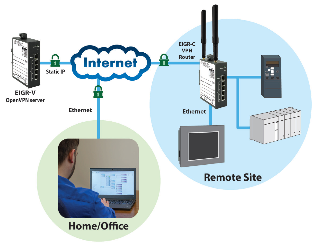 通过Internet访问远程站点上的机器可能是一个挑战,因为防火墙会阻止来自Internet的消息。尽管可以通过使用端口转发在防火墙中开放端口,但IT专业人员不愿损害他们的网络安全,通常会拒绝这种类型的请求。没有IT部门的许可,系统集成商几乎没有选择。解决这个问题的一个方法是加入虚拟专用网(VPN)服务,比如科动控制的RemoteVPN订阅服务。