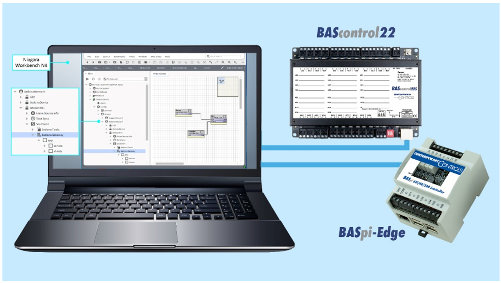 在支持Niagara Framework®的产品中,我们将展示用于对Niagara和Sedona控制器进行编程的“单一工具”解决方案。通过将N4 Sedona驱动程序安装到Workbench N4或N4 JACE,主管可以对Niagara控制器和我们的BAScontrol Sedona控制器进行编程。安装N4 Sedona驱动程序后,Niagara4(版本 4.11或更高版本)可用于通过Sedona(SOX)与Sedona设备进行通信,以读取/写入其点。它还可用于对Sedona设备上的线表进行编程。N4 Sedona驱动程序已获得Sedona社区成员Ontrol的许可,可免费用于我们的BAS控制器。