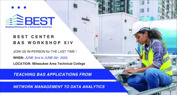 Building Efficiency for a Sustainable Tomorrow (BEST) 中心的最后一场面对面 BAS 研讨会将于 6 月 2 日至 6 日在威斯康星州密尔沃基的密尔沃基地区技术学院举行。该研讨会旨在向 HCAVR 讲师介绍该领域技术人员使用的最新技能和技巧,并帮助他们为学生制定课程计划。科动控制产品管理总监 Harpartap Parmar 将于 6 月 3 日讨论 BAS 中的网络趋势。