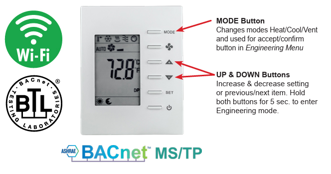 BACnet 通信恒温器的 BASstat 系列中的所有型号均具有通过 MS/TP 或 Wi-Fi 实现的 BACnet 功能,并且可以通过 BACnet 客户端轻松监控。
