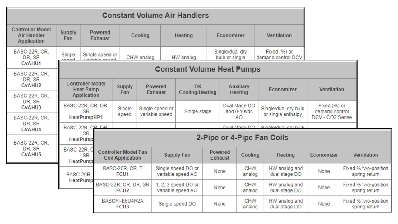 虽然所有控制器型号都可以使用Sedona进行自由编程,但通过安装预构建的应用程序之一,可以将它们变成可配置的控制器: